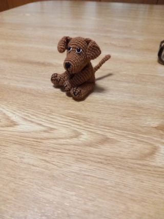 Dolce cagnolino realizzato all'uncinetto, perfetto come bomboniera o portachiavi. - Colore: marrone - Dettagli ricamati sul muso e sulle zampe - Occhietti di sicurezza neri