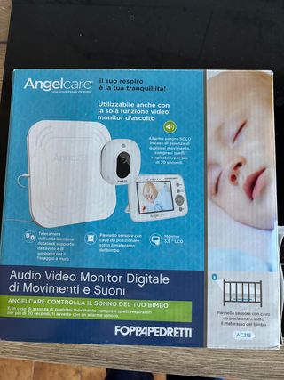 Prodotto usato ma tenuto benissimo. Scatola originale, scontrino originale. Angelcare AC215 di Foppapedretti è un video monitor ascolta bambino che rileva suoni e movimenti, anche respiratori, del neonato. Un allarme sonoro avverte in caso di assenza di qualsiasi movimento, compresi quelli respiratori, per più di 20 secondi. La telecamera con visione notturna, grazie al sistema a raggi infrarossi ad attivazione automatica, consente - Telecamera con supporto da tavolo o a muro. - Pannello sensore con cavo da posizionare sotto il materasso. - Monitor LCD da 3,5 pollici. - Allarme sonoro per assenza di movimento per più di 20 secondi.