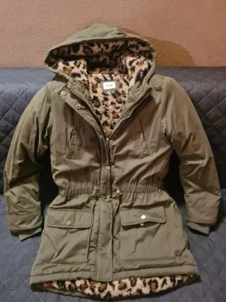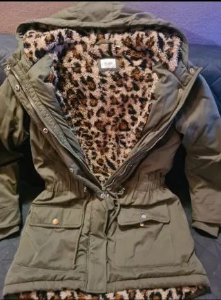 Parka imbottita con fodera leopardata, perfetta per le giornate più fredde. - Cappuccio foderato. - Coulisse in vita per regolare la vestibilità. - Tasche frontali con patta e bottone. - Polsini elasticizzati.