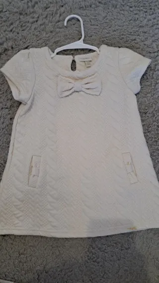 Bellissimo abito Fagottino di colore bianco, perfetto per le occasioni speciali. - Tessuto lavorato con motivo a rombi. - Fiocco decorativo sul davanti. - Tasche applicate sui fianchi. - Maniche corte.