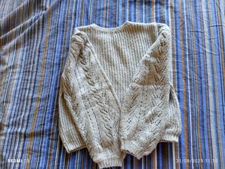 Elegante maglione da bambina con un delicato motivo a trafori sulle maniche. Il filato è morbido e confortevole. - Maniche lunghe con dettagli traforati.