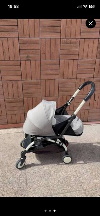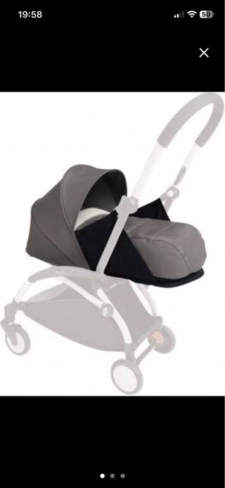 Capazo per il passeggino Babyzen Yoyo. Non l'ho mai usato perché utilizziamo il bugaboo fox. - Colore beige. - Include maniglie di trasporto nere. - Tetto pieghevole. - Include l'adattatore per collegarlo al telaio.
