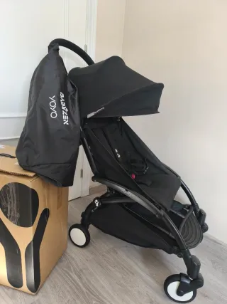 Pacchetto neonato della marca BABYZEN, modello YOYO+. Colore nero. Adatto da 0+ mesi. Include copertura antipioggia. Utilizzato poche volte poiché non è il passeggino principale del bambino.