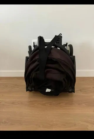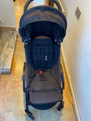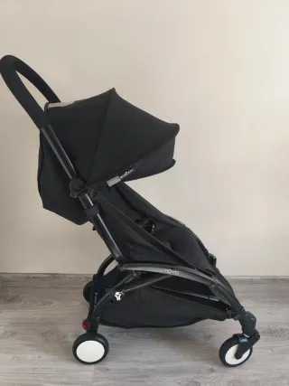Passeggino YOYO della marca Babyzen, in colore nero. Design leggero e compatto ideale per viaggiare. Capottina estensibile. Ruote manovrabili. Protezione antipioggia. Poggiagambe. Una ruota danneggiata ma continua a rotolare, per il resto è abbastanza buono.
