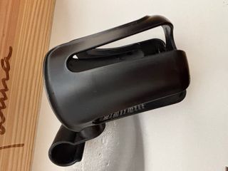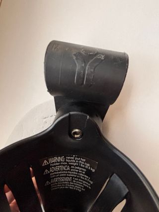 Barra appoggiabraccio per passeggino Yoyo Babyzen. Si aggancia facilmente al telaio. Materiale imbottito per una maggiore comodità. Connessioni in plastica nera. Presenta una piccola macchia visibile nell'immagine.