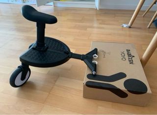 Monopattino per passeggino Babyzen YOYO. Permette a un bambino più grande di viaggiare in piedi o seduto. - Piattaforma con sedile antiscivolo rimovibile. - Ruote per facilitare il movimento. - Compatibile con tutti i passeggini YOYO. - Cinghie per ripiegarlo e mantenerlo in posizione verticale quando non in uso. - Scatola originale e istruzioni. Praticamente nuovo, usato in pochissime occasioni. Nessun segno di usura, visibile nelle foto.