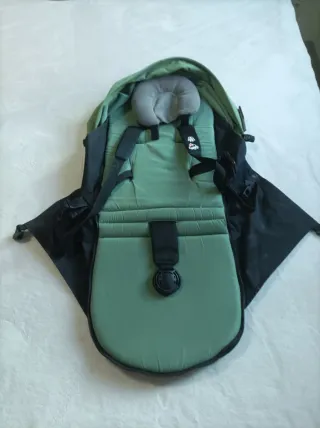 Capazo per neonati in colore verde, originale del marchio Yoyo Stokke Babyzen. - Interno rivestito in pile bianco. - Include un'imbracatura di sicurezza nera. - Tetto regolabile. Il passeggino è come nuovo, usato poche volte perché è un secondo passeggino solo per viaggiare. Si regala una copertura antipioggia che è macchiata, credo sia stata conservata male e non ha un'estetica buona. Ma non influisce sul suo funzionamento.