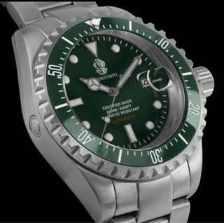 EDIZIONE LIMITATA 55/100 Diametro della cassa: 45 mm (corona esclusa) Spessore della cassa: 20 mm Bracciale da 22mm-20mm La circonferenza dell'orologio è di circa 23 cm Peso: circa 300gr. Cassa in acciaio 316L Movimento Automatico giapponese Seiko nh35 (24 rubini, 41 ore di riserva di carica, 21.600 BPH) Ghiera unidirezionale lucida con 120 scatti Datario Indici e lancette luminosi nel buio Valvola automatica di rilascio dell'elio Antimagnetico Cristallo zaffiro 4,5mm Data con lente d'ingradimento, Cinturino in acciaio con prolunga per muta (vedere foto bracciale aperto) Corona e fondello serrati a vite con doppia