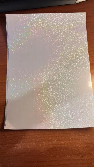 Fogli adesivi con effetto olografico e iridescente. - Superficie trasparente. - Effetto scintillante e cangiante. 5 fogli totali