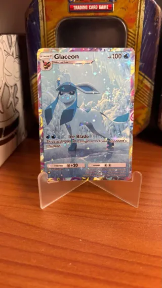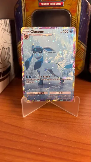 Carta Pokemon Glaceon Stage 1. - HP 100. - Attacco: Ice Blade (50 danni). - Debolezza: +20. - Ritirata: 2.
