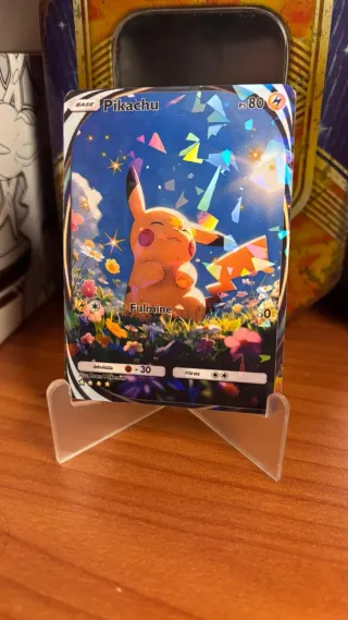 Carta Pokemon Pikachu Fulmine con 80 Punti Vita. - Carta Pokemon. - Personaggio: Pikachu. - Attacco: Fulmine. - Valore: 80 PV.