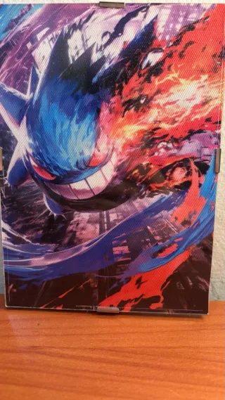 Stampa artistica su tela raffigurante Gengar, stile dinamico e colorato. Dimensioni: 13 × 18 cm Condizioni: Ottime, completa di cornice, pronta da appendere. Materiale : Canvas