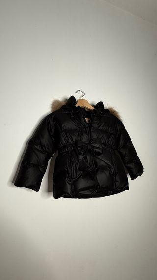 Bellissimo piumino nero del marchio Il Gufo, taglia 4 anni. Perfetto per tenere al caldo i più piccoli con stile. - Imbottitura in piumino. - Cappuccio con pelliccia. - Cintura con fiocco in vita.