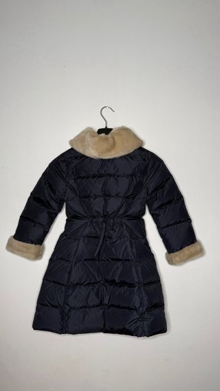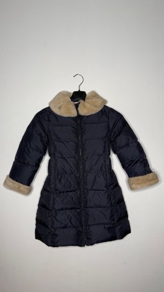 Caldo cappotto imbottito Il Gufo per bambina. - Taglia 6 anni. - Imbottitura in piumino. - Collo e polsini in pelliccia sintetica.