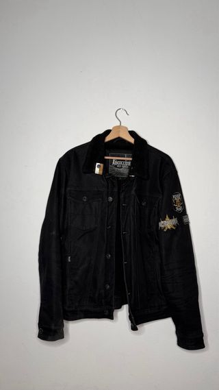 Giacca invernale Boxeur des Rues in colore nero, taglia L. Presenta un colletto foderato in pelliccia sintetica per un maggiore calore. - Chiusura frontale con bottoni. - Due tasche sul petto con patta e bottone. - Dettagli patch sulle maniche.
