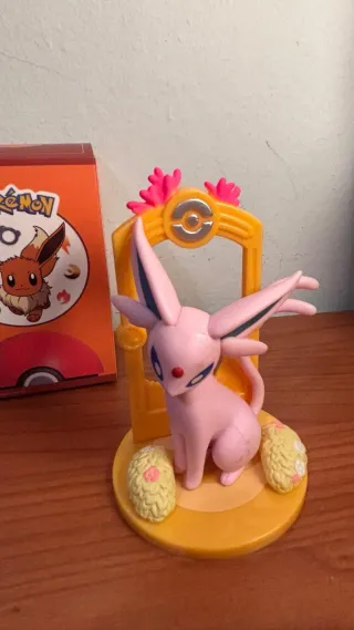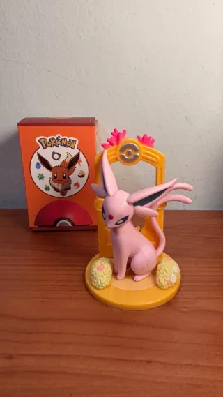 .Vendo splendida figure di Espeon, uno dei famosi Eeveelutions di Pokémon. La statuina è dettagliata, con base gialla decorata e cornice Poké Ball sullo sfondo. Ottima per collezionisti, per esposizione o come regalo per appassionati della serie. ✔ Stato: Ottime condizioni, mai usata per gioco, solo esposta ✔ Materiale: PVC ✔ Perfetta per amanti di Eevee e delle sue evoluzioni