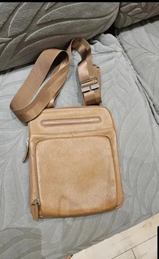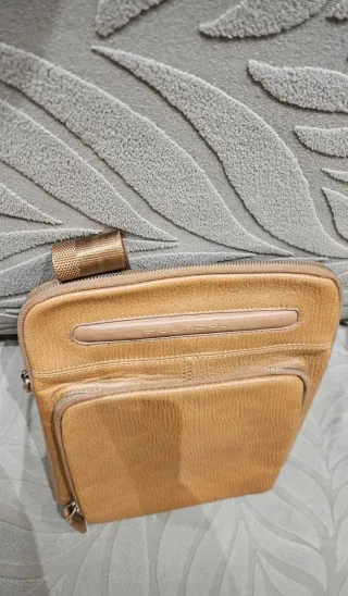 Borsello Piquadro in pelle, colore beige e marrone. - Materiale: Pelle - Tracolla regolabile