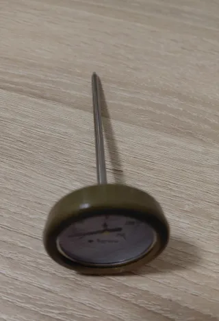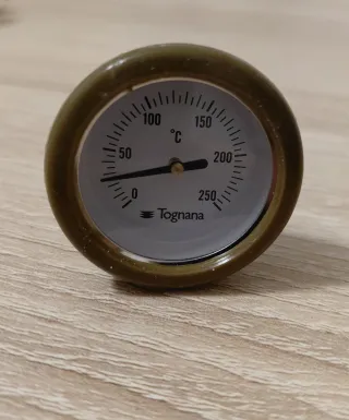 Termometro per alimenti Tognana, utile per controllare la temperatura. - Quadrante con scala in gradi Celsius. - Puntatore nero. - Ghiera esterna color verde oliva.
