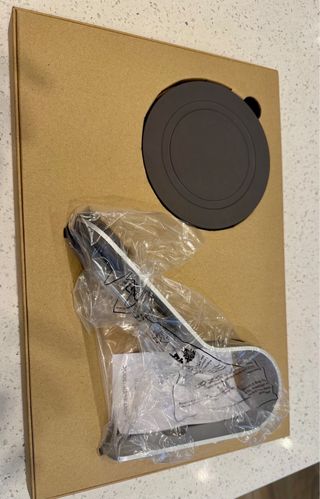Base di ricarica e supporto per phon Dyson. Design elegante e moderno. - Finitura in argento. - Foro circolare superiore per l'alloggiamento del phon. - Foro circolare inferiore per il cavo.
