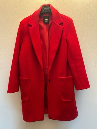 Elegante cappotto rosso, perfetto per ogni occasione. - Due tasche frontali applicate. - Chiusura con un bottone