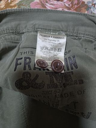 Pantaloni in tessuto di colore verde oliva. - Logo Franklin Marshall sul retro. - Tasca -bottoni interni ricambio REGALO ALTRO PANTALONE IN FOTO -Vendo entrambi No separati