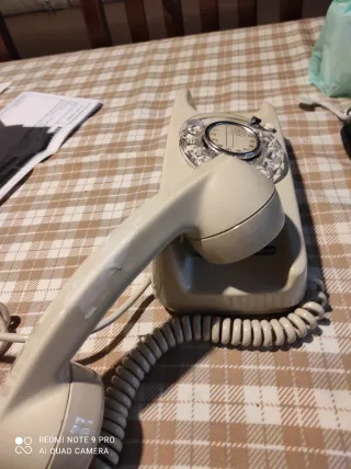 Un classico telefono fisso con design vintage. - Colore beige - Tastiera a disco. - Cavo a spirale.