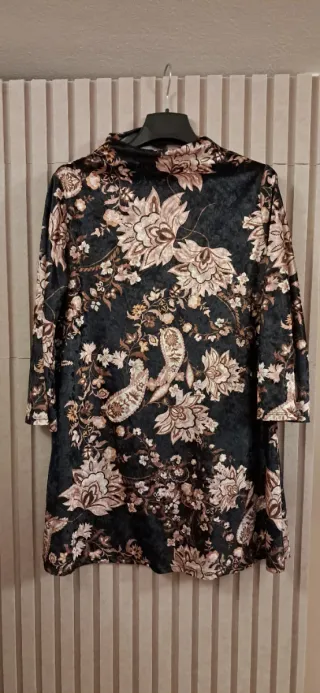 Abito in ciniglia con una bellissima fantasia floreale. - Tessuto morbido e confortevole. - Design unico e colorato. Manica 3/4 e ampia come Usura in foto. Completa il look urbano da portare con stivali, anfibi o décolleté. Perfetto per ogni occasione.