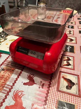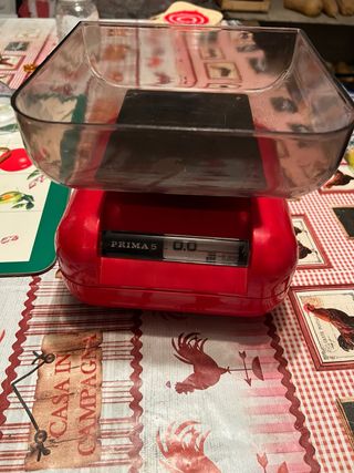Bilancia da cucina Prima 5 Vintage anni 60 perfettamente funzionante. - Vaschetta in plastica - Base in plastica rossa.