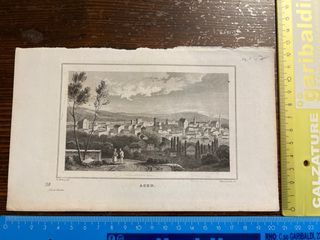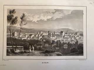 Antica stampa francese raffigurante la città di Agen.