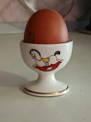 Portauovo in ceramica, un pezzo unico che porta un tocco di artigianato italiano nella tua tavola. - Decorazione con cavallo a dondolo. - Finitura con bordo dorato. Scheggiatura in ultima foto. Ho in vendita molti oggetti per la casa e la cucina. Dai un'occhiata. Sconti sui set