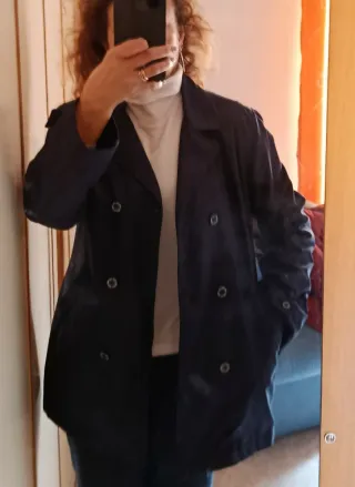 Trench primaverile Tom Tailor. Spalle cm 43. Lunghezza cm 73, giorno cm 53 - Modello doppiopetto. - Colore blu.