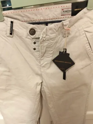 Bellissimi pantaloni Rumjungle. - Chiusura con bottone e zip. - Tasche anteriori e posteriori. - Dettaglio logo sulla tasca.