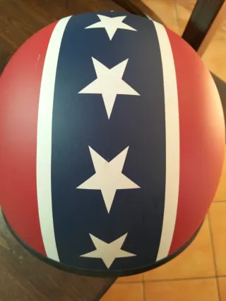 Casco da moto da uomo con un design a stelle su sfondo blu, bianco e rosso. - Design a stelle - Colore rosso, bianco e blu - Interno imbottito
