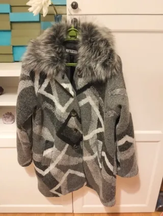 Elegante parka da donna con un design unico. - Cappuccio con pelliccia sintetica. - Fantasia geometrica. - Chiusura con bottoni.