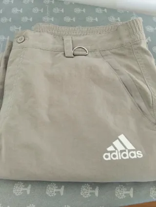 Pantaloni Adidas in colore beige. - Logo Adidas sul lato. - Cintura elasticizzata con passanti e anello metallico. - Tasca laterale. - Chiusura con bottone.