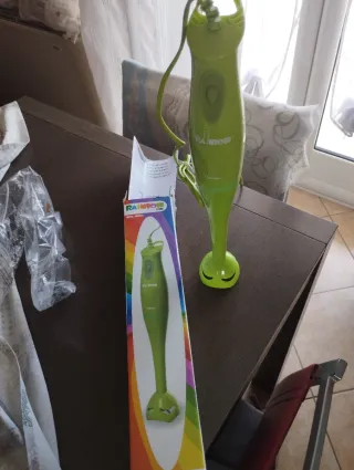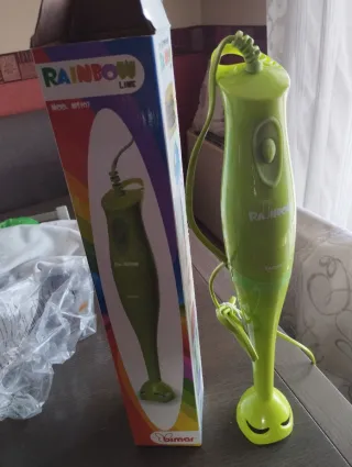 Frullatore ad immersione marca Rainbow UK, colore verde brillante. - Design ergonomico. - Cavo di alimentazione integrato.