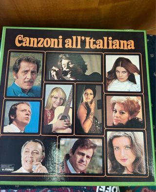 Raccolta di 9 vinili Canzoni all'italiana. - Nove dischi in vinile. - Copertina con immagini di artisti italiani.