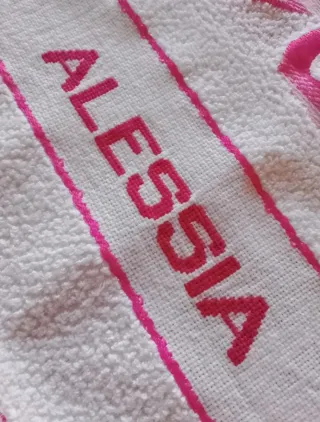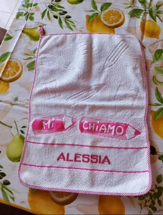 Asciugamano per asilo o scuola dell’infanzia, ricamato a mano a punto croce con il nome Alessia 💗 Misura circa 37 x 50 cm. Usato pochissimo e in ottimo stato. Il ricamo con le matite e il nome lo rende perfetto per accompagnare una bimba all’asilo con un tocco dolce e personale. Ideale se la tua bambina si chiama Alessia oppure come piccolo ricambio per l’asilo. #asilo #asciugamano #puntocroce #ricamoamano #bimba #scuolainfanzia #corredoasilo .