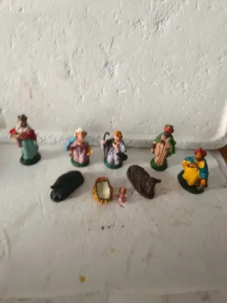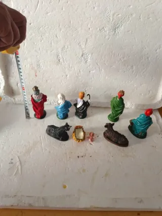 Set di statuine per presepe. - Personaggi della Sacra Famiglia e Re Magi. - Altezza circa 10 cm.