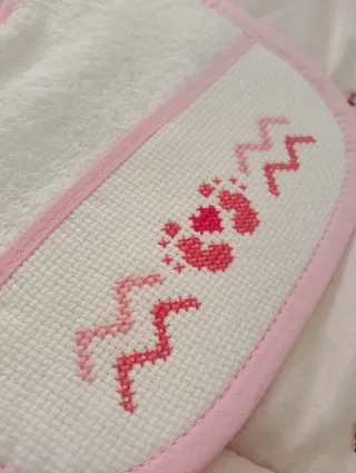 Delicata bavetta per neonata in morbida spugna bianca con inserto in tela Aida ricamato a mano a punto croce. Il motivo con piedini e cuoricino rosa rende questa bavettina tenera e perfetta per i primi mesi di vita 👣💗 ✨ Ricamo artigianale ✨ Morbida e assorbente ✨ Ideale per poppanti ✨ Pezzo unico Perfetta per il corredino o come piccolo regalo nascita. #bavettaneonata #bavaglino #puntocroce #ricamoamano #neonato #regalonascita #artigianato