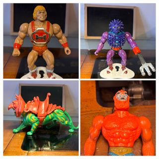 Lotto di action figure dei Masters of the Universe. - Include He-Man, Spikor, Battle Cat e Beast Man. - Personaggi iconici della serie animata. He man pugno volante funzionante in condizioni discrete. Battle cat in buone condizioni, armatura completa in discrete condizioni, solo un gancio della fibia rotto che non pregiudica la chiusura. Spikor in buone condizioni. Beast man solo per uso per parti di ricambio. In omaggio stand stampato in 3d. Per ulteriori informazioni scrivetemi.