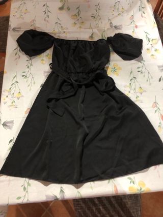 Abitino estivo con maniche a sbuffo e cintura. - Scollo a barca - Maniche corte a sbuffo - Cintura con laccetti - Gonna svasata