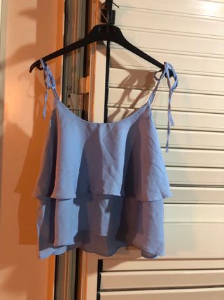 Bellissimo top a balze, perfetto per un look fresco e alla moda. - Design a balze sovrapposte - Spalline sottili con fiocchi regolabili
