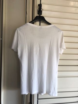 T-shirt a maniche corte in cotone a costine. - Scollo rotondo. - Orlo ondulato.Piccolo buchino cime da foto,facilmente riparabile con ago e filo