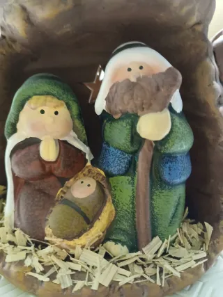 Un grazioso presepe in coccio, perfetto per le festività. È possibile mettere nell'apertura dietro un lumino: farà un grazioso gioco di luci attraverso i fori a forma di stella. Realizzato in terracotta. Dimensioni: altezza circa cm 12, diametro circa cm 11 Nuovo mai usato senza etichetta