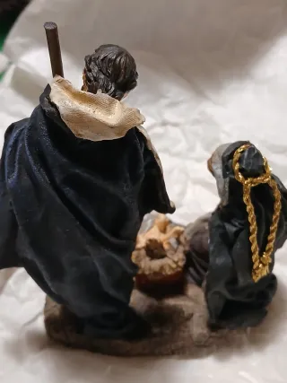 Pregevole Natività artigianale, un pezzo unico per decorare la tua casa. Figure in resina finemente dettagliate. Ambientazione curata nei minimi particolari. Ideale per un tocco di calore natalizio. Marca Iris. Senza scatola originale ma mai usato Dimensioni: Base grigia: 10cm circa x 6cm circa H Madonna 8cm circa H San Giuseppe 12 cm circa