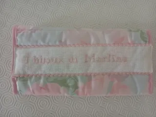 Portagioie Camomilla con ricamo a mano e nome Martina. Ricamo personalizzato con nome Martina con filo rosa. Tessuto imbottito fiorato. Apertura e chiusura con velcro. All'interno uno scomparto con cerniera, diverse asole e punti per riporre collane, anelli, orecchini, braccialetti, ... Dimensioni: -Chiuso 24×13 cm circa -Aperto 24×32 cm circa Nuovo mai usato ma senza etichetta perché fatto a mano