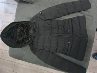 Piumino imbottito con cappuccio e pelliccia - Chiusura centrale con zip. - Tasche laterali con zip. - Dettagli a coste sulle tasche. In ottime condizioni, come nuovo