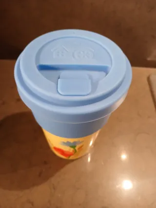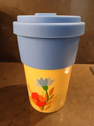 Tazza termica Mulino Bianco La Felicitazza è la tazza termica in ceramica con tappo in silicone del Mulino Bianco. Materiale: Porcellana a doppia parete per mantenere il calore. Parte esterna colore giallo con fiori, interno bianco. Tappo in silicone blu con chiusura e logo casetta del Mulino a rilievo sul tappo. Fascia in silicone per evitare eventuali scottature con bevande calde. Diametro superiore della tazza: 9cm Diametro inferiore: 6,5cm Altezza: 13cm Capacità: 250ml Anno 2024. Nuova, mai usata ma senza imballo originale.