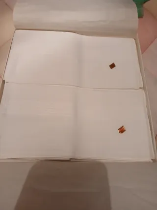 Confezione da 12 fazzoletti nuovi, di produzione italiana. Marca Sfinge (vedi scatola originale e etichetta adesiva interna). Nuovi mai usati. Tessuto in cotone italiano pregiato con trama a quadretti. Bordi rifiniti. Tinte pastello: 3 fazzoletti color azzurro, 3 fazzoletti color grigio e 3 fazzoletti color "rosso chiaro". Dimensioni fazzoletto: 42x43 cm circa.